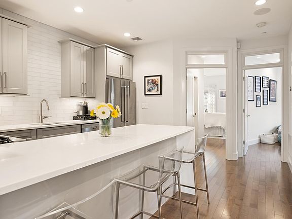 AVAILABLE NOW. 7/10 of a mile to the Maverick Square Blue Line station, this 2017 new construction condo will instantly impress you with its stunning sunlit open plan. High-end details and finishes run throughout this luxurious 2 bedroom, 2 full bath unit. The cook's kitchen provides a great place to prep and entertain while enjoying the open layout. The spa-style bathrooms are super clean-lined and spacious. And the main bedroom has an ensuite bath and an expansive walk-in closet. The property includes an in-unit washer and dryer, a large private deck, and a shared backyard, great for relaxing on a warm summer day. Central Air conditioning, a wine fridge, and hardwood floors throughout are a few additional features you will love! On-street parking is abundant and many of Eastie's favorite establishments are just a short walk away. Grab a coffee at the Seabiscuit and take in the Boston views on a lovely walk along the water. Eastie living at its best! The owner pays for water. Tenant responsible for paying gas and electricity. No smoking. Small dogs under 50 lbs are negotiable. The first month's rent, security deposit, and Broker's fee = 1 month's rent all due upon lease signing. Parking is available on-street, a permit is required.