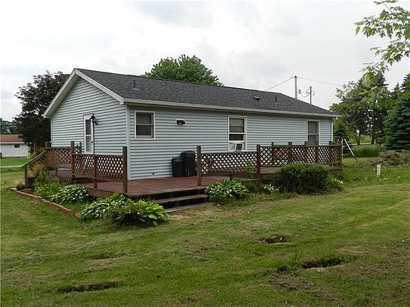 Perfect starter or downsizer! Enjoy comfort, simplicity, & style in this just-the-right-size ranch embraced in maintenance-free vinyl siding while presenting a well-designed interior on a picture perfect 1 acre country setting. Sun-drenched living room is underscored in woodgrain flooring & illuminated by double windows. Galley-style kitchen showcasing bright white cabinetry, neutral counters & adjacent dining venue. Rest and relaxation await in 3 comfortable bedrooms w/ sizeable closets. A full bathroom is accompanied by white vanity, coordinating cultured marble counter & decorative lighting completing the main level. Living space continues into a full basement w/ finished bonus room that can be utilized as a 4th bedroom or den. Basement also offers abundant storage & convenient laundry area. This all-electric home is well insulated for year-round comfort. Other amenities include storage shed & wrap around rear deck overlooking picturesque backyard partially lined in flowers.