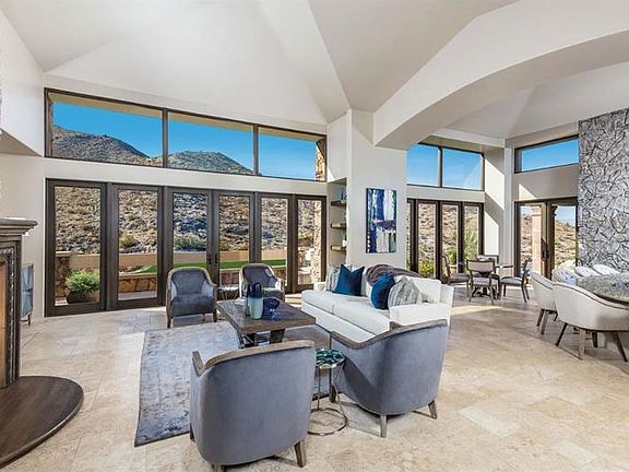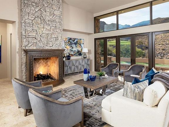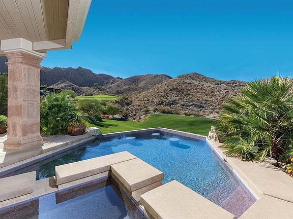 This renovated and furnished desert contemporary home sits elevated in the hillside of Bighorn Golf Club with spectacular mountain and fairway views. It offers spacious living room with plush seating, masonry fireplace and a wrap around wet bar. Outdoor Chef's kitchen open to the family room with pocket sliders to the outdoor living with fireplace and seating area, pool and spa. Luxurious master suite with intimate seating area around fireplace, spa-inspired his/her areas. Office conveniently located close to the master bedroom. Separate guest wing features two suites with private baths, closets and media. The covered outdoor living area, infinity-edge dipping pool and sap dining area, barbecue center and pool bath are the perfect way to enjoy spending time outdoors.