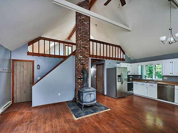- Features: Wood / Coal / Pellet Stove, Cathedral Ceiling(s), Ceiling Fan(s), Flooring - Laminate, Open Floorplan