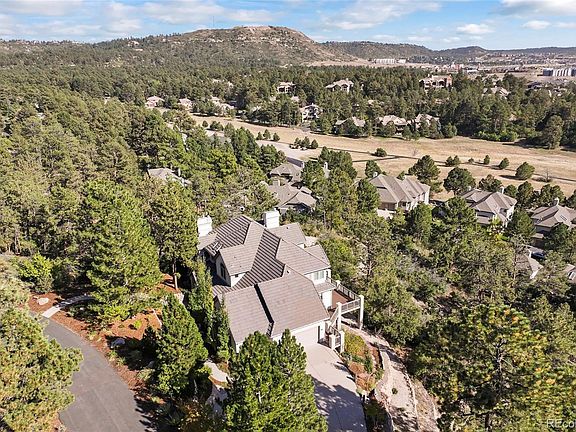 Sweat equity opportunity! Rare, 1.5 acre lot with panoramic southeast views and vistas encompassing downtown Castle Rock, Pikes Peak and Devil's Head situated in the coveted community of Castle Pines Village. Quality construction combines with upside potential inside and out of this traditional two-story. Featuring a dramatic entry leading to the formal living room with a bay window and cozy fireplace and a formal dining room adjacent to an efficient Butlers pantry. The office with built-ins shares the spectacular views and has deck access. The family room has a wall of windows, flooding the room with natural light, built-ins and a fireplace. The kitchen has a cozy breakfast nook, island and walk-in pantry. A guest bath and the laundry room complete the the main level. A split staircase leads to the Primary Suite which offers stunning views, a coffee bar, fireplace, walk-through closet and a five-piece bath with an oversize tub and shower. The Jr. Suite includes a 3/4 bath and walk-in closet. The secondary bedrooms share a jack-n-jill bath with an oversized vanity and double sinks. The 2067 square foot walk-out basement has rough-in plumbing, a wall of windows, 10 foot ceilings and unlimited potential. The home is surrounded by towering pine trees, gamble oak, and rock outcroppings, a nature walk right outside your door. The Village amenities include security, three pools, tennis and pickleball courts, parks and trails. A true Colorado experience just minutes from Denver.