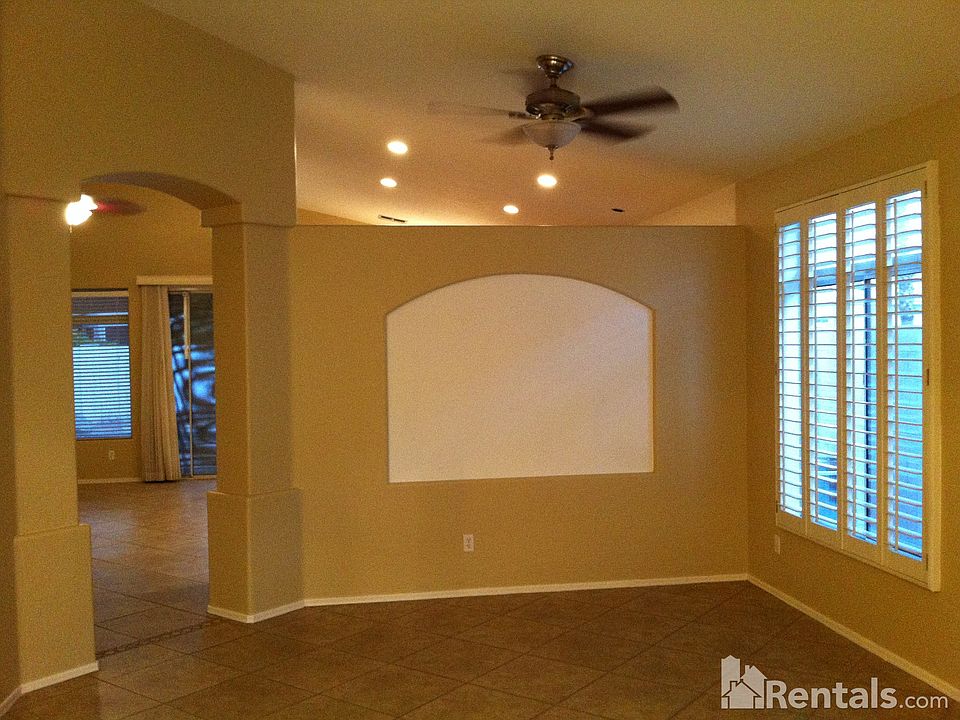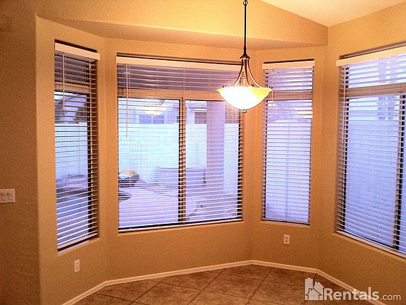 Popular community for it's location, proximity to the largest park with lake, A+ schools, shopping, highway and works. 4 bedrooms, 2 baths and 2.5 car garage with built in cabinets and working bench. Open floor plan with formal dining and living area, along with breakfast nook. Vaulted ceilings enhance an already bright open floor plan. Total 6 ceiling fans at just the right spots. Upgraded baths. Tile floors laid on the diagonal in living, dining, family and kitchen! Extended cover patio leads to Pebble Tec pool for summer party. Desert Landscape in the front and back. Upgrades on granite countertop, lighting fixtures, stainless steel appliances, almost new brand name washer and dryer, new blinds and two tone beige/white fresh paint throughout. You have to see it to appreciate it! Available for move in on the 1st of February of 2015. Viewing is available now. Credit check fee: $35 per adult; Rent: $1,580/mo (Including HOA); Security Deposit: $1,580. If applicable, there will be a pet security at $300; $300 Cleaning Fee; 12 month lease; Cat/Dog OK