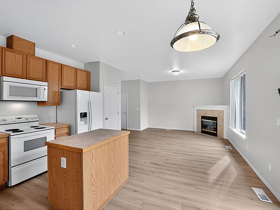 Fresh paint and new flooring! This spacious home has vaulted ceilings throughout and a living room gas fireplace. The island kitchen is equipped with an electric range, refrigerator, microwave and dishwasher/disposal. Washer and Dryer Provided. DBL garage, FAG heat and air conditioning. NO SMOKING, PETS MAY be considered.