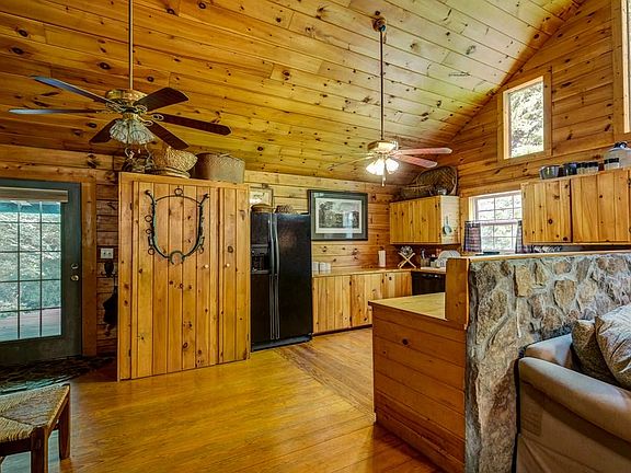 - Interior Features: Vaulted Ceiling, Ceiling Fan(s), Washer/Dryer Connection, Laundry on Main, Wood Ceilings, Wood Walls, Double Vanity