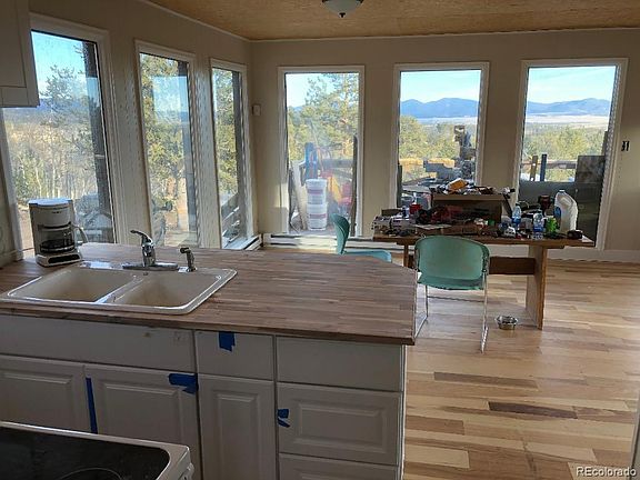 Views! Views! Views! This stunning A-Frame has been recently completely remodeled. New Bath, New Kitchen, New main floor flooring, New Stove/Range/Oven, New Refrigerator. 2 Bedrooms with the possibility of a 3rd bedroom. You will be able to enjoy the beautiful, peaceful views and surroundings from the front porch deck. Lovely fireplace in the main living area. Horses are allowed* Try to imagine the breathtaking snow capped mountains, the incredible sunsets and the beautiful stars in the night sky. The peace and quite can be yours just a couple hours from Denver. You will have the opportunity to enjoy 4 acres of Mountain serenity.