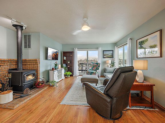 Be wowed by the views from this light, bright, move-in ready home in a quiet, convenient neighborhood. The split-level floor plan offers separation of space and investment potential; 3 bedroom, 2 bathroom upper level is a cozy home with an updated kitchen, wood burning fireplace and balcony deck off the living area. The lower level is 1 bedroom, 1 bathroom provides additional space or rental opportunity with kitchenette and exterior rear entrance. The tiered usable backyard with a flat paver stone terrace, is fenced, has large colorful plant pots, electricity for spa, fruit & flowering trees and drip irrigation. The high producing owned solar array and oversized 2 car garage round out this ideal property. Recent home updates include roof, HVAC, windows, appliances, hot water heater, paint and fixtures. This is a great 2 unit investment or place to call home. Features sheet is attached.