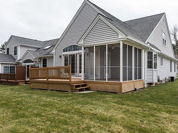 Sought out end unit ranch style garden condo at The Elms next to Elmcrest Country Club now available! Features desirable amenities and open floor plan, masterbedroom suite, guest bedroom can also be used as an office and has its own entrance to a full bathroom! Beautiful light filled open floor plan! Kitchen with kitchen island and hardwood floors, dining room with hardwood floors, gorgeous large living room with cathedral ceilings, recessed lighting, and doors that lead to deck! Large first floor laundry room! Fabulous screened in sun porch is a bonus! Two car garage, large basement that can be finished for extra space! Want the best of both worlds? Possibility of 2nd floor expansion for another room! Maintenance free, easy living! Call list agent for additional details!