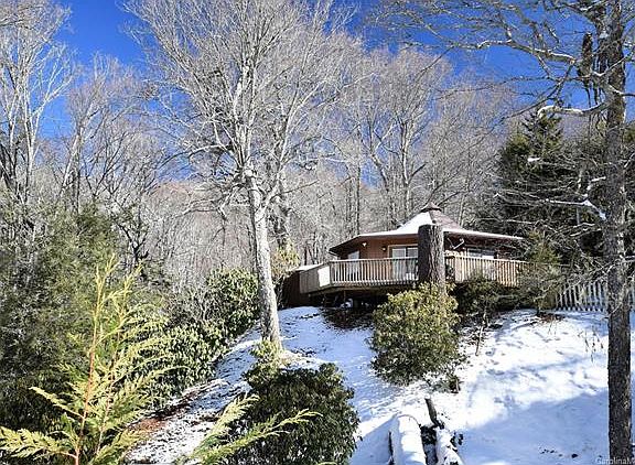 Deltec Round Home at almost 4500 ft. of cool elevation. This home had the following installed new within the last 6 years: Beautiful Hickory hardwood floors throughout, front-load washer and dryer, refrigerator, electric range/oven, microwave, kitchen cabinets, 2 sliding glass doors, electric water heater, propane wall heater, pex plumbing, faucets and bath fixtures. This would make a great vacation cabin in the mountains. The property is totally bounded by the Blue Ridge Parkway property (915 acres) on the Northeast boundary. The home has an open floorplan with attractive cabinets and hickory hardwood flooring throughout the home. It is listed as a one bedroom home but has a bedroom and a bonus room. This a "must see home" if you are looking for that cabin in the mountains.