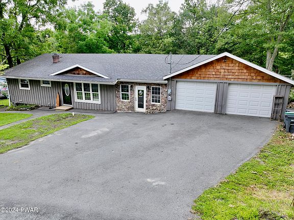 RENOVATED RANCH-On the outskirts of charming Hawley PA you will find a lovingly renovated Mid 20th century ranch situated in Palmyra Township. The heart of the home is the large open kitchen flowing into a spacious dining area and living room, complete with stone fireplace. The home provides the owner with a spacious primary suite, attached bath, stunning 2 headed shower, a large walk in closet and a sitting area/office. A full hallway bath services the second spacious bedroom. The current owner has a full service salon accessible from the kitchen and also has separate exterior entrance. This beautifully done space provides a half bath, separate room used currently for pedicures, and the main room provides for waiting area, product display, washing and styling. Bring your passion and vision, what would your use of the space be. A large deck accessible from kitchen breakfast nook sliders provides ample area for outdoor living, fenced rear yard for privacy and pet safety. Basement is a walk out and provides ample storage area, easy access. Parking for 5 cars off street and 2 car garage. The home is walkable to town park, canal hiking trail, the quant village of Hawley and stores.