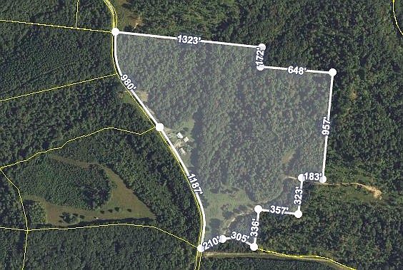 Beautiful 52 acres with large horse barn. Land is partially fenced for horses. GREAT for hunting. 2 bed/1 bath farmhouse with detached garage conveys with the land.