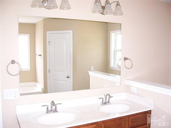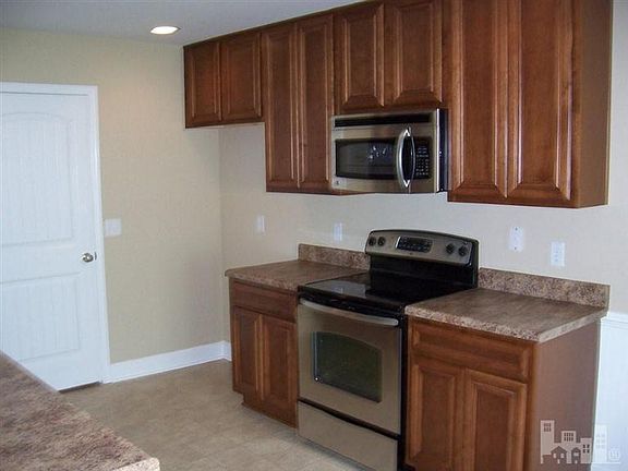 Ranch style home features front porch, patio, and landscaping. Cathedral ceiling in family room. Dining area/nook off kitchen. Kitchen equipped with stained hardwood cabinetry, stainless steel double sink, garbage disposal, and GE appliances including built-in microwave, freestanding range, and dishwasher. Master bedroom features trey ceiling, 2 walk-in-closets, and attached full bath with garden tub, separate standing shower stall, linen closet, and raised height dual vanity. Upgraded moen faucets in bathrooms and kitchen. Cultured marble vanity tops and elongated toilets in bathrooms. Extras include ceiling fans, laundry room with pantry, hardwood/carpet/vinyl flooring, and 10 year Bonded Builders Home Warranty. Seller to pay up to $3000 in closing costs with builder's approved attorney