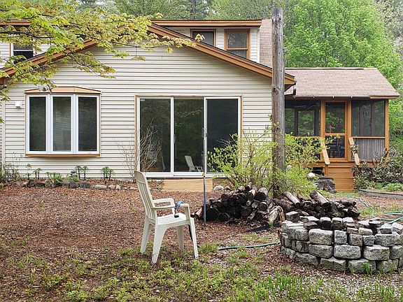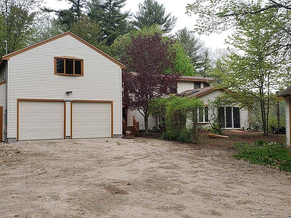 If you are looking for a waterfront with some privacy, this 1.26 Ac. lot with 127' of sandy frontage, 4 bedroom septic system adds some expansion options, 3 bedroom 3 bath Cape with 2 car detached 2 story garage plus drive through work shop for your ATV or snowmobile is for you. Sunroom, living room and primary suite additions completed in the late 1990s as well as the the original house updated.Garage was built around 2012. Kitchen addition and upstairs bath done in 2013.Large room above garage for storage or more living area. House features a primary bdrm suite on the first and second floors. Sunroom has a hot tub and wet bar for your enjoyment. Open concept kitchen and dining, first floor laundry, deck and screen room overlooking the lake, full walkout basement. 14 kw standby generator.