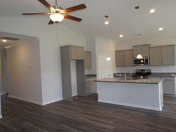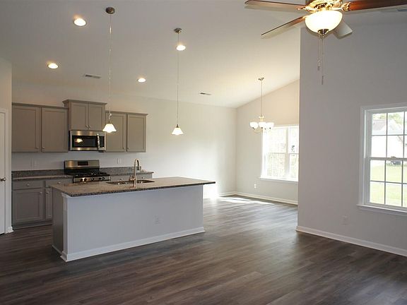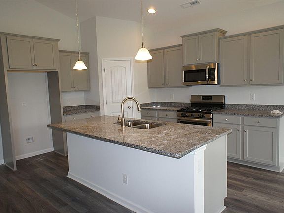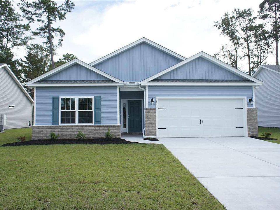 Beautiful Topsail C floor plan in the new Ocean Palms community. Purchase early and choose all of your own colors!. This terrific 3 bedroom, 2 full bath, open floor plan home will have waterproof laminate flooring under the soaring vaulted ceiling in the family room, kitchen and dining area. Crown molding in all bedrooms and Foyer. Stainless appliances, staggered-height Shaker-style grey painted cabinetry, a corner pantry and a convenient and gorgeous quartz kitchen island combine to give the kitchen the wow factor you're looking for, and the abundant recessed lighting and double window in the adjacent dining area floods the room with light. A French door leads to a covered rear porch with a large separate patio. The spacious master retreat features a tray ceiling, oversized walk-in shower, plenty of storage in the cabinetry, plus two huge walk-in closets. Two additional bedrooms and a bath are tucked off on their own private hallway, for privacy. All of the homes in Ocean Palms come standard with the luxury of natural gas (tankless water heater, gas heat and a gas range). The garage is completely trimmed and painted, with floored attic space accessed by drop-down stairs. Ocean Palms is conveniently located near shopping, restaurants, schools and world class medical offices and hospitals, and a short golf cart ride to Surfside Beach's gorgeous beach and the Atlantic Ocean. Other floor plans and inventory homes may be available, and CUSTOMIZATION OF FLOOR PLANS IS POSSIBLE!!! Community pool and cabana coming soon! Photos are of a completed, similar home and may have different features.