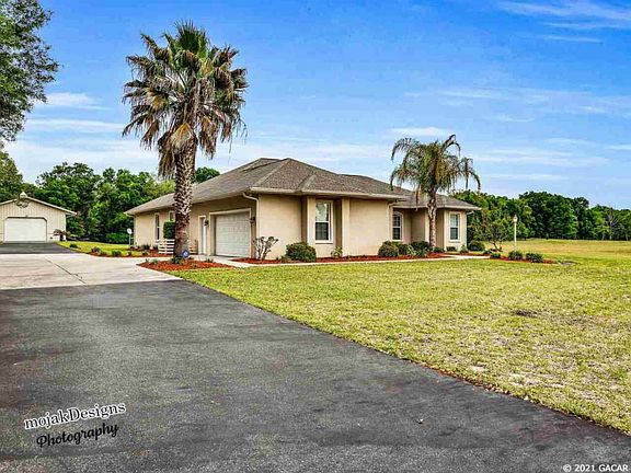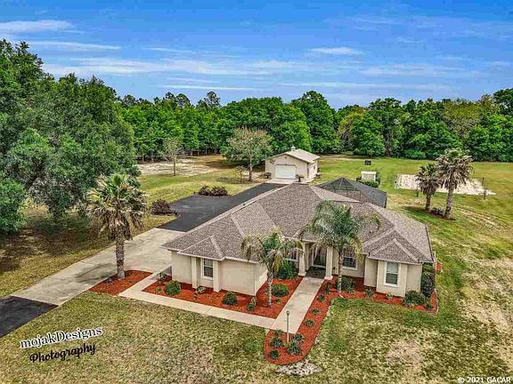 Immaculately kept, estate home just north of High Springs in Columbia county (low taxes), on 20.63 acres of gorgeous pasture with Granddaddy Oaks Custom built home (steel and concrete reinforced walls) features 10 foot ceilings (tray ceiling in Master Bedroom) crown molding and chair railings, ceramic tile and Bamboo laminate flooring, carpet in bedrooms only. Gorgeous kitchen with solid oak cabinets, stunning sealed granite countertops, and top of the line stainless steel Samsung appliances. Generous chefâs pantry. Breakfast nook overlooks the pool, lanai, and the lush pastures beyond. Traffic flow from the family room to kitchen to formal dining room to living room to lanai inspires great entertaining! Everyone will enjoy the enclosed, gunite salt water pool and lanai. Private office with French doors is perfect for those working from home. Separate laundry room. Oversize garage (554 sq ft.) accommodates 2 large vehicles and work/storage space. Outdoors, the 30â X 35â Morton steel building has plenty of space for tractors, implements, workshop, and all the toys! Outdoor lighting completes the stunning picture in the evening. So much more! See list of upgrades in documents section. A Must See Home!