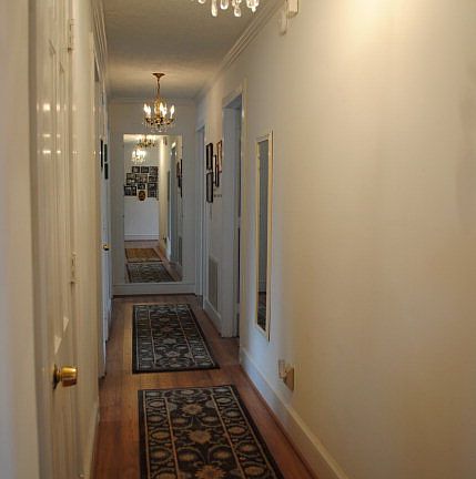 Beautiful ranch with a huge, flat backyard (sits on three lots) and a comfy covered porch area and spacious wooden decking off back of house. Two-car garage with jalousie (louvered) windows on the side. This inviting home has a nice flow from the formal living room, to dining, to large eat-in kitchen, to family room/den, to outside sitting area. The laundry area is in a separate room next to the kitchen area (washer and dryer hookups only). The Master Bedroom has a private full bath. All rooms are good-sized and have excellent natural lighting. A new, 4-ton heat pump was installed in 2013; Pergo floors were installed in Aug of 2013 and in some areas was placed over existing hardwood; most faucets were replaced in 2007; replacement windows (22)were replaced in 2007 & dishwasher in 2002