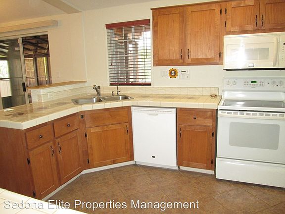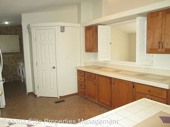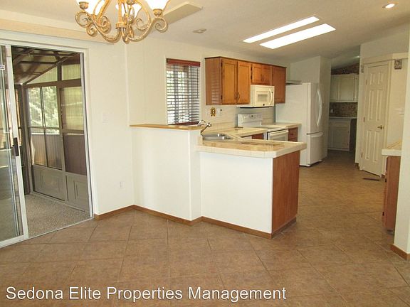 361 Sunset Hills Drive - - 3BR/1.75BA manufactured home located on a corner lot in the Sunset Hills subdivision of Sedona. 55+ community, one tenant must be 55+ and any others must be at least 40.Built in 1994, approx. 1,852 sq. ft. with mountain and red rock views. Open floor plan with split bedrooms. Freshly painted, A/C, skylights, amazing outside terrace and wrap around deck with lovely views. Living rooms features cathedral ceiling, two large picture windows bringing in natural light and pass through window to kitchen. Spacious open kitchen with walk-in pantry, electric stove, ample counter space, dishwasher, top/bottom refrigerator and easy access to the dining room. Laundry room next to the kitchen with unique wall of wine corks. Family room offers fireplace, and three large pictures windows with artful stained glass above. Step out to the enclosed Arizona room for casual dining and/or relaxing. Master bedroom with ceiling fan, walk-in closet and adjoining bathroom. Spacious bathroom with two sinks and walk-in shower. Travel to the other side of the home where you have the second and third bedrooms and second bathroom with tub/shower combination. You have an incredible terraced flagstone backyard for charming outdoor enjoyment. Truly amazing deck with inviting mountain and panoramic red rock views. Double car garage with loads of storage. $1,775/mo. Tenant has utilities of electric, water and sewer. Available approx. October 1, 2019. Tenants in Residence - Please call the office for Showings Pet Friendly - Dog or Cat 55+ community, one tenant must be 55+ and any others must be at least 40. (RLNE5128086)