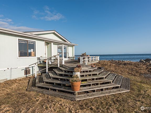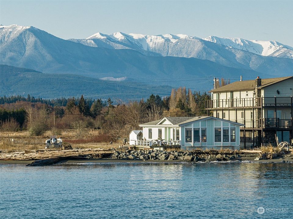 Two bedroom home with impressive views on a level waterfront lot, in idyllic Dungeness Bay. Over one half an acre with exceptional mountain and water views. Crabbing, boating, and beachcombing just steps from your front door! Enjoy birds, wildlife, and tranquility in this serene setting. Nearly 180 degree view from light-filled living room, dining room, & kitchen. Two full baths including primary suite. Existing home is in need of some TLC, but fully livable as-is. Usher in the next chapter, or live here while planning your new build. Property is serviced by community well and 2 bedroom septic. A short drive to town, organic farm-stands, berry-fields and county parks.