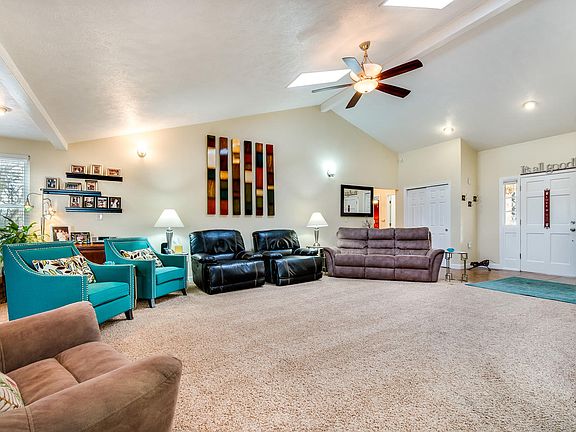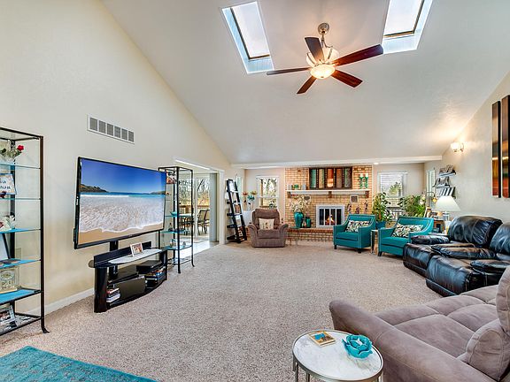 Wonderful, beautifully appointed sunlit Ranch 5BR/3BA home w/walkout basement & custom finishes throughout, backs to the Highline Canal and Grandpa's acres park with mountain views. With almost 3700 finished sq ft, main floor boasts remodeled opened floor plan, enormous vaulted great room w/skylights, & updated kitchen that flow to new 42 x 10 upper trex deck overlooking serene park-like yard has it all and is perfect for entertaining inside and out. Remodeled master suite. Basements boasts wonderful bonus room with brick fireplace that opens to the back yard, 3 generous bedrooms, ample workshop/storage area and Kitchenette, making it great as mother-in-law space. Private back yard featuring storage shed, garden areas, swing set is canopied by trees in the summer, and mountain views and sunsets in the winter. New champion windows and slider doors, new hail resistant roof, carpet, paint, fixtures and more. RV parking and additional off street parking.