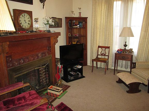 Historic 1.5 story Brick Home, great location in town! Some TLC and this home will be amazing. Spacious and solid home, 9 foot ceilings on main floor. 2 gas lot fireplaces in living room and den. Basement Three car garage with an oil pit in one of the garages for changing your own oil. Original White color brick, not painted. Plenty of parking, great in town lot with nice front and back yard space. Enjoy the relaxing front porch. So much potential. Mixed use zoning. ONLY $199,900!