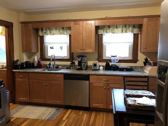 Renovated first floor level with hardwood floors and beautiful woodwork. Kitchen and bath tastefully updated. Wall a/c unit in dining room. Delead compliant letter. Rent inclusive of washer, dryer, landscaping and snow removal. Lovely shared yard is complimented by direct access garage. Basement has laundry dedicated to this unit, storage, steam by gas heat and direct access to the 1 car under garage.