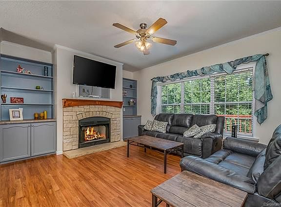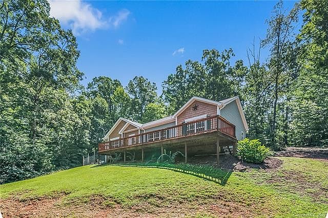 Private, open floor plan home on 5 acre wooded lot. The primary bedroom suite is very spacious with walk-in closet, linen closet & separate tub & shower. Love the abundance of cabinetry in the kitchen w/island and raised bar plus built-ins surrounding the fireplace. Laundry/mud room conveniently exits to the back yard and both rear and front decks are huge! Fantastic fire pit area perfect for those chilly fall evenings w/small enclosed area for pets or maybe even tiny humans. This is a beautiful setting in a very quiet and peaceful location not too far from Rutherfordton.