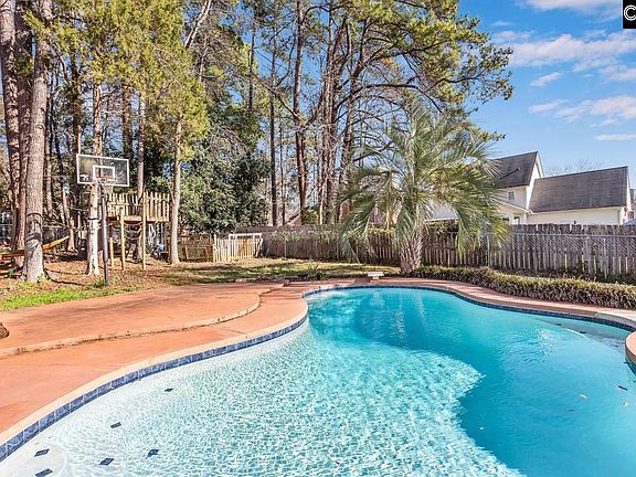 Welcome home to this 4bed/2.5 bath 2316sqft 2 car garage home located in the popular Whiteford subdivision conveniently located in the heart of Lexington, SC! This home comes with a pool, hot tub, grill, outside play area/treehouse and gym equipment. This home has adorable curb appeal with a welcoming front porch! Inside you will find beautiful hardwood floors throughout the main level, a living room with a fireplace and window nook, formal dining room (currently being used as a playroom, but also could be an office). The kitchen boasts white cabinets, beadboard backsplash, a newer dishwasher, solid surface counters, built ins and lots of natural light with a bay window and a sink overlooking an amazing backyard perfect for entertaining! The beautiful pool has been resurfaced along with new tile. You can shoot hoops with the built-in basketball goal and enjoy the hot tub right outside the back door! Entertain on the patio with grill and fire pit area! Upstairs you will find a bonus room FROG with built in bed area to use as a 4th bedroom. You will also find a welcoming master with 5 piece ensuite featuring a spa like deep jetted tub and tiled shower with double sinks. There are 2 additional bedrooms with shared updated hall bath. This home is zoned for award winning Lexington 1 schools! Convenient to Lexington shopping, I-20, the Lake Murray Dam and more! Come make this beautiful home yours today!