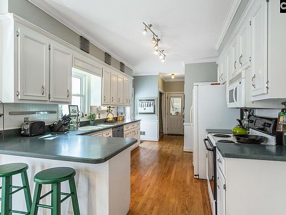 - RoomKitchenFeatures: Pantry, Eat-in Kitchen, Nook, Bay Window, Counter Tops-Formica, Floors-Hardwood, Bar, Cabinets-Painted