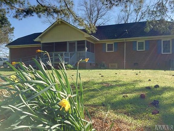 Attractive brick home located less than 3 minutes to Edenton. This brick ranch offers a formal LR, kitchen w dining bar & "open" to a spacious den w FP & built ins. Step out onto a large screened porch and enjoy an outside living area! Easy access ramp on back of home. Comfortable sized bedrooms; Master has private bath w shower. Hall bath w tub/shower combo & new vinyl flooring. Separate laundry room w sink & entry door. This yard is always BEAUTIFUL! Filled with mature trees, camellias, daffodils & more. Enjoy a two car garage & large floored attic for lots of storage.