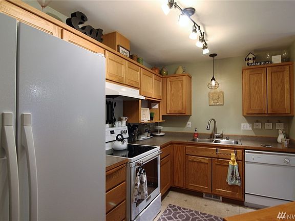 Quick, don't miss this extra quiet, terrific 3 bedroom townhome tucked in next to a greenbelt area so you only have one sweet next door neighbor. Big backyard is fully fenced with storage shed. HUMUNGOUS master has entrance to huge full bathroom from own room or the hallway. For convenience full size washer & dryer on main floor as well as guest powder room. All appliances stay with full priced offer. Covered front porch is nice for your guests. Shopping, dining, mass transit & I-5 minutes away.