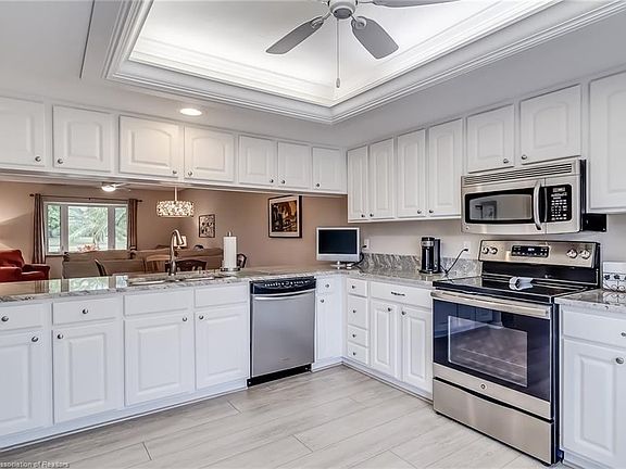 YOU'RE GOING TO LOVE THIS HOME! From the manicured lawn with landscape curbing & decorative driveway, to the screened porch overlooking the golf course, to the BRAND NEW ROOF! This villa is beautiful and meticulously maintained! It features tile & waterproof vinyl plank flooring throughout. The large kitchen has a tray ceiling, granite counters, white cabinets, stainless steel appliances & a breakfast nook that opens to a private courtyard patio. The great room floor plan also includes a bonus room/den with a bay window looking out to the course. The master suite features a walk-in closet & a beautifully remodeled bathroom. The guest bedroom & bath are perfect for family or guests. And then there's the screened back porch and patio, with a gorgeous view of the golf course! A TRUE MUST SEE!