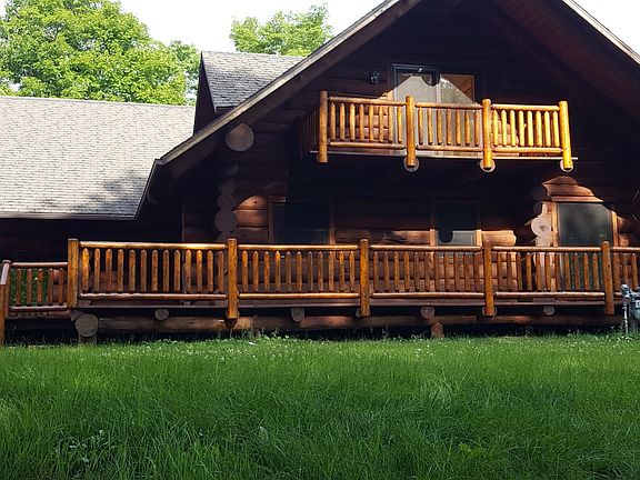 Custom full handcrafted log home! This is a must see to believe! It currently is rented out so appointments must be made to see!! More acres available. Videos available upon request.