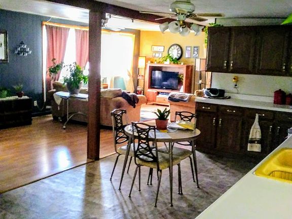 All brick open floor plan ranch home offers 2 nice sized bedrooms, full bathroom and laundry area on main level. Newer counter tops, kitchen appliances & hot water heater. Pleanty of storage space & home includes an outdoor storage shed for toys and more. Home rests on a .48 acre lot with rural setting and has a full unfinished basement area waiting for your finishing touches!