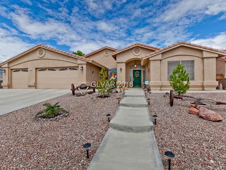 HIGHLY DESIRABLE & RARE LOT IN THE VINEYARDS THAT BACKS UP TO BLM LAND! UNOBSTRUCTED VIEWS OF MT. CHARLESTON & SPRING MOUNTAINS FROM COVERED BACKYARD PATIO WITH FANS. 3 CAR GARAGE & STORAGE SPACES, PLENTY OF ROOM! MASTER SEPARATE FROM BEDROOMS & GARDEN WINDOW BREAKFAST AREA CELEBRATES VIEWS! HOUSE IS PRISTINE & COMPLETELY TURN KEY. GRANITE, & ALL DRAWERS ARE PULL OUTS, & APPLIANCES ARE INCLUDED! MUNICIPAL WATER & SEWER IN HOME BUILT BY SAM WOOD.