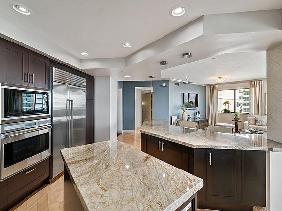 Outstanding 3BR/3BA Barclay with exceptionally updated/renovated kitchen. Expanded and opened up to all main living areas perfect for entertaining. A chef's dream with Sub-Zero refrigerator, Wolf oven/microwave & Jennaire cook top. Center island, quartz counter tops & pull-out drawers provide every convenience. Beautifully finished - custom closet doors with CA style treatments, crown moldings, plantation shutters in all bedrooms and silhouette shades in the main living area. The 500 sq. ft. wrap-around balcony offers 180 degree views and breathtaking sunrises. And you'll love The Landmark's carefree, luxury lifestyle...located in the epicenter of everything Palm Beach Gardens has to offer. Amenities include: FT Valet, Concierge, Sun-deck level salt pool, fitness center, Theater plus..... generous BBQ area and social & game rooms. PET-FRIENDLY!. Surrounded by world-class shopping at the Gardens Mall, fine dining and entertainment. 10 minutes to pristine Jupiter and Juno beaches. 20 minutes to PIA and private airports. Luxury and Location.....