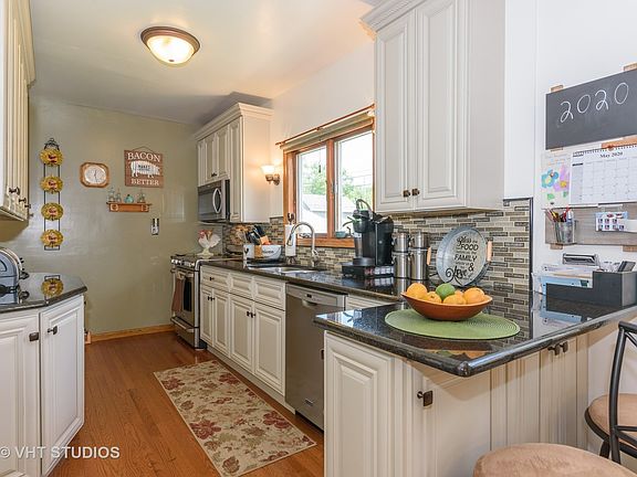 Truly a home well loved, this is one you won't want to miss! From the moment you walk into the large foyer with vaulted ceiling, skylight, and huge closet, you'll be impressed! Beyond the foyer you'll be greeted by the 2 sided fireplace w/ stone in the living room with 10' ceiling! On the other side of the fireplace you'll discover the family/TV room w/ mounted flat screen TV. Saunter through the recently updated kitchen and notice the 9' ceilings, wood floors, upgraded SS appliances, along with the dark granite counter tops, a breakfast bar, and gorgeous newer cabinets with crown moulding and 42" uppers for plenty of storage. The kitchen is open to the dining room to keep the conversation flowing! As you continue throughout the home you'll notice the MORE than ample amount of closet and storage space. The entire upstairs is a dedicated Master Bedroom w/ full en-suite master bathroom including a separate shower, a therapeutic air tub, and separate makeup table besides the dual sinks. The main level shows two good sized bedrooms with large closets in each and joined by a full Jack & Jill bath. There is a 3rd full bath and laundry room in the back. You'll find a partial unfinished basement for even more storage or to finish in any way you wish! And if all that isn't enough, take a walk out back onto the no-maintenance composite deck w/ detachable (included) gazebo to see the HUGE detached true 2 1/2 garage with additional workroom! Or enjoy the view from the deck to the immaculately kept large perennial garden. So much to see in one home! And the storage space throughout w/ even extra unexpected areas in the attic is incredible. The windows have all been replaced over that last number of years with all Anderson Wood windows. From the 4 yr old roof, to the character of the arched doorways, to the wood kitchen & dining room floors and the 9' and/or 10' ceilings throughout much of the main level, you are sure to be impressed. Make your appointment to see this one soon as it surely won't last long!