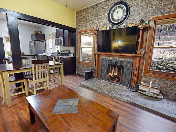 RESTORED HISTORIC MOUNTAIN VIEW FARMHOUSE ON 2.63 UNRESTRICTED ACREAGE. From the moment you step into this 3 bedroom,1 bath you'll be surrounded by character and charm that only an historic farmhouse can offer. Spacious kitchen with center island that looks out to living room which is ideal for family gatherings. Stone fireplace to cozy up to on those cool mountain evenings. All new LVP flooring throughout. Step outside to the rocking chair covered deck, take in the views and wildlife while enjoying your morning coffee. Additional deck space is ideal for entertaining or relax and unwind in privacy. Property has gated entrance and there is plenty of space for gardens. Outdoor storage building for yard tools. 2004 Montana 5th Wheel 37 foot camper will convey with the sale of the home.
