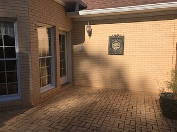 This is a single family home in an established neighborhood. It has an open concept design with the living room, dining area, kitchen and breakfast nook. There is a brick enclosed and gated patio off the breakfast nook to enjoy your morning coffee and paper. The kitchen, dining and living rooms all have 12 foot ceilings with elegant crown molding. Large windows show the covered patio and barbecue area off the living room. There is a remotely controlled gas log fireplace to enjoy. Also, in the living room is a wet bar for your entertaining. The master bedroom is large and has a large master bath with a jetted garden tub and shower. There is a large walk in closet as well. The other two bedrooms and bath are on the other side of the house that allows for privacy. The two car garage is roomy and has space for cabinets for storage. Also, attached to the house is a storage room with an entrance on the patio and to the driveway. There is also an additional metal storage building in the backyard.