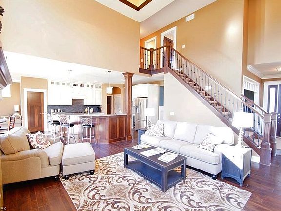 Fabulous Elegance Homes model in Glengarry. Located in the excellent rated Lake local school district. Open floor plan with lots of natural light. Solid wood doors and wood flooring throughout and 9' ceilings on the first floor. Stunning, two-story great room with beamed, trey ceiling and gas fireplace. Foyer has crown molding, wainscoting and ceramic flooring. Formal dining room has crown molding and wainscoting. Beautiful hearth room has a stone, floor-to-ceiling gas fireplace. Stunning kitchen with lots of cabinetry for storage including a walk in pantry, cabinetry accent lighting, granite countertops, ceramic tile backsplash, breakfast bar, a dinette area and stainless steel appliances to include a wine cooler and rack. First floor laundry room off kitchen. Mud room with built in bench located by laundry room. Spacious master suite. Master bedroom has double trey ceiling. Huge master bathroom has double sink and granite counter, separate water closet, walk in closet, huge bath tub, stand alone shower with decorative cermaic tile and ceramic flooring. First floor half bath. Additional amenities include high energy efficient furnace, central vacuum, security system, 9' poured basement walls for a higher insulation factor and basement is rough plumbed for a future bathroom. This inviting home has lots of warmth and charm.