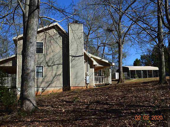 Country Living with City Convenience! Farmhouse with metal roof has private setting w/ 6.9 acres, mostly wooded. Sit on your full-length Back porch and enjoy the wooded setting. You feel like you are in the GA mountains. Freshly painted interior, stainless steel appliances, security system, wood burning fireplace, jetted tub, separate shower, double vanity plus office area. Pole shed carport, outbuilding, fencing, chicken coop, security cameras. No subdivision restrictive covenants; zoned R-AG