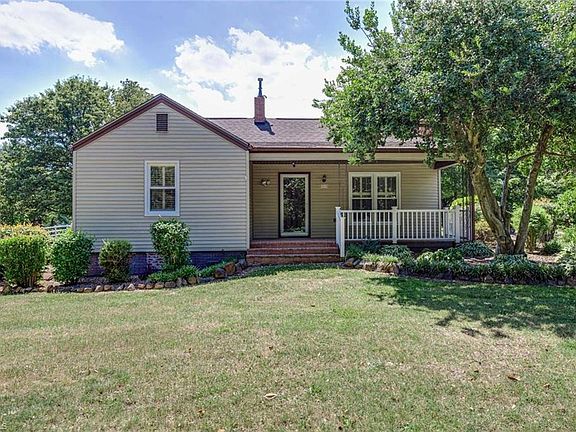 COZY HOME WITH ALOT OF SPACE INSIDE AND OUT! Home was built in 1947 with an addition in approx mid 90's. Kitchen with tile flooring, eat at bar, dishwasher and BRAND NEW gas range. Original hardwood floors in living room and bedrooms. Attic space could be finished for additional square footage. Addition features a large master bathroom with jetted tub, seated shower, walk in closet and handicap accessible. And has a separate heat pump. LARGE bonus room with built in cabinets and bar. Possibly could be used as a 3rd bedroom. Plantation shutters throughout the home. Unfinished basement. Double attached garage & single detached garage/workshop. Fenced in yard. Lovely covered patio area for your family get togethers. Security System. Wired outbuilding. Beautifully landscaped. Close to restaurants & shopping yet you feel as though you are in the country.