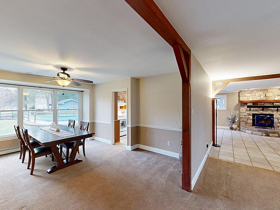Welcome home to this unique property with 2 ensuite bedrooms and a detached building with 2 oversized garage spaces and large second floor bonus room. This home is great for working from home, running a small business (within zoning allowances), or entertaining family and friends with an open floor plan, and in-ground pool on 1.5 acres. The main building of this well-maintained home includes 5 bedrooms, 3 full bathrooms, large living space, and an attached 2-car garage off the basement laundry and storage area. There is a first floor ensuite bedroom as well as a large ensuite bedroom on the second floor including vaulted ceilings, 270-degree views of the property, large bathroom with double head shower and plenty of space for an oversized soaking tub of your dreams, and skylights which provide amazing natural light. The kitchen has beautifully crafted cherry cabinets including a custom pantry and pull-out shelves to maximize your storage space. The kitchen also features granite countertops, a quiet Bosh dishwasher, stainless steel French door refrigerator, and a 5-burner gas stove for cooking gourmet meals. The large kitchen space provides an opportunity to expand by adding more cabinetry or an island to meet your culinary needs. The radiant heating under the tile floors in the kitchen and main living room compliments the cozy Vermont Casting wood burning stove with custom stone hearth. The carpeting throughout the remainder of the first level covers hardwood floors. The oversized detached garage has two 9’ x 10’ garage doors, radiant floor heating, and a large 2nd floor 25’ x 25’ (approximate size) bonus room with separate access from the outside and includes a pool table, ping pong table, and powder room. This bonus room can be used for entertainment, an office, or home occupation since it has a separate dual zoned heating system and provides a quiet space away from the main house. The outdoor spaces make this home great for entertaining on the deck with two pavilions, plenty of space for grilling, and a heated Carlton pool that was recently replastered and tiled with a new pump. This spring you will surely enjoy these outdoor spaces overlooking the beautiful perennial flower gardens around the entire house or working in the garden shed. This home offers privacy and convenience given it is located near the 202 bypass and less than 3 miles from a Septa commuter train stop. You are only steps away from many miles of walking trails along the 202 bypass that extend from Doylestown to Lansdale as well as quieter side trails that lead you all the way to Lions Pride Park and John Paul Park (formerly Lower Nike Park) which are approximately 3 miles away. There is convenient access to shopping and restaurants within minutes. In addition, this home is in the highly rated Central Bucks School District. Be sure to use the Virtual Property Tour link for a private walk through of the property from your phone or computer. You can use the Floorplan or Dollhouse views to see the overall house layout. Dive deeper by selecting a room to start your tour and select the circles on the floor to move around the house. Use your mouse to see 360 views at each circle. There is also a Measurement Mode which allows you to see where your furniture will fit in your new home. Listing Agent is related to the Seller.