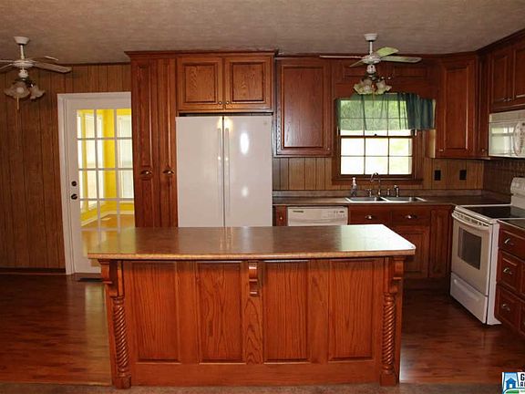 Do not miss out on this great price! Well Maintained 3 Bedroom & 1 Bath Home features open floorplan with spacious family room and kitchen with an island and custom made cabinets, beautiful sunroom, and large laundry room. Amenities are upgraded cabinets in the kitchen with lazy susans and pull out pantry & spice rack, ceiling fans, decorative iron storm doors and windows, wrap around porch, metal roof, vinyl siding, double carport, circular driveway, gazebo, dusk to dawn light, peach trees, pecan trees, and 3 storage buildings with electricity. Great investment for first time homeowners or investors!