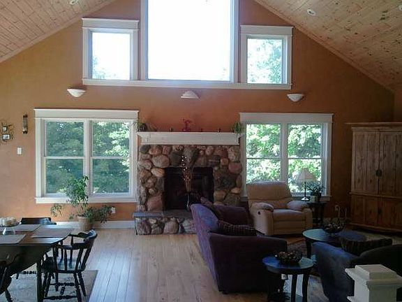 Built in 2002. Custom 2 story home - 3 bedrooms, 3 bathrooms, 2,300 square feet above ground. Possible 4th bedroom in lower level. Total finished square feet 3,400. 2.5 acres. Cathedral ceilings, hardwood floors, nice open floor plan. Two fireplaces, wood stove, 2 large decks, beautiful tile floors, large master suite. Call for a private tour.