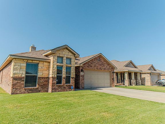 Welcome Home! This meticulously maintained residence features a brick and stone exterior with large front windows. It includes three bedrooms and two bathrooms. Enjoy covered entryways and a spacious family area with an inviting brick fireplace, perfect for entertaining guests. Upgrades include granite countertops, marble vanities, and ceramic tile. Additional features include a large master suite, ample closet space with high ceilings, and a murphy bed in the front guest bedroom. The large covered back porch is ideal for enjoying West Texas sunsets. The Milwaukee Ridge HOA offers amenities such as a community park, pool, playground, sand volleyball, tennis, and basketball courts.