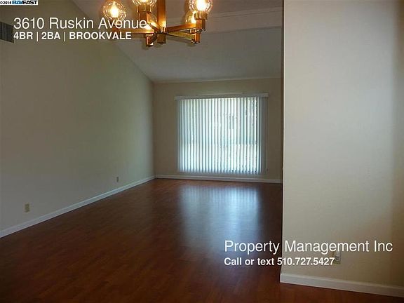 SCHEDULE A SHOWING ONLINE AT: showmojo.com/lh/7761ed9029 Tastefully remodeled Brookvale home flows beautifully with pergo floors, gourmet kitchen,and updated bathrooms.Other amenities include cozy fireplace,dual pane windows,recessed lighting and landscaped yards(gardening included). One block to American High and close to Blue Ribbon Brookvale Elementary. COMMUTER'S PARADISE...CLOSE TO BART AND 880.. KEY FEATURES: Address is 3610 Ruskin Ave. in Fremont 1503 square feet Built in 1976/completely remodeled 2014 4 bedrooms 2 bathrooms 2 car garage Gardening provided Blue Ribbon schools include: Brookvale Elementary (925 API) Thornton Jr. High (913 API) and American High(871 API) Lease duration- 1 year Available July 1st Pet negotiable MUST HAVE: Minimum monthly income of $9,870 Excellent rental history Current employment Credit and backround check for each adult over 18 $30 application fee per adult No Section 8 or smokers please CONTACT MIKE AT PROPERTY MANAGEMENT INC TO VIEW