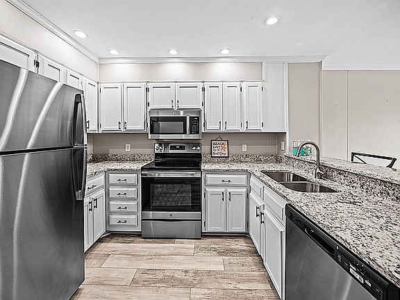 - Features: Breakfast Bar, Stainless Steel Appliances, Solid Surface Counters