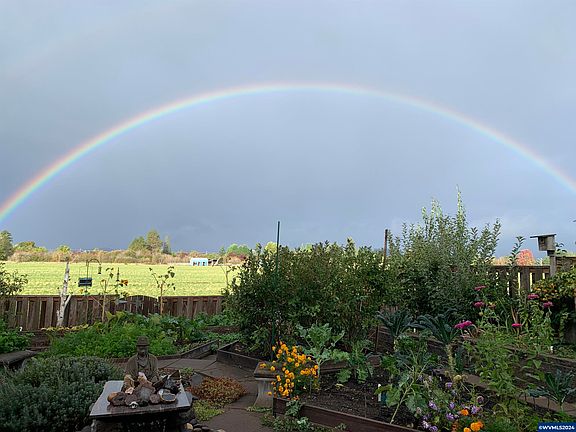 Stunning open floor plan and green built home in desirable Willamette Landing. Three spacious bedrooms, 2.5 baths, & office/den. Main floor great room with gas fireplace & access to the fenced backyard. Beautiful kitchen with island, gas cooktop, & pantry pullouts. Primary suite w/high ceilings overlooking the Coast Range. Impeccably landscaped backyard with raised beds, water feature, and patio for outdoor entertaining. This home has rooftop solar panels and amazing views of Marys Peak.