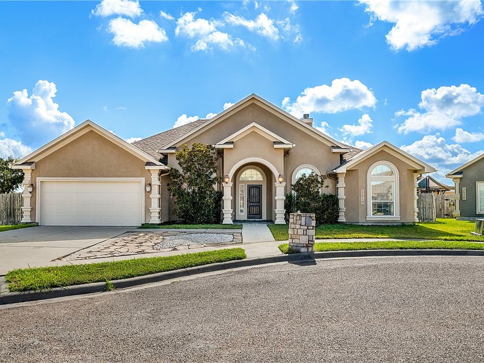 Situated on a cul-de-sac corner lot, this stucco home in The Lakes Northwest offers a versatile layout with 4 bedrooms, 3 full baths, an office, and 2 dining areas. The kitchen is designed with both function and style in mind, featuring a large island, breakfast bar, generous pantry, and gas stove.The open spaces flow easily for gatherings, while the private rooms provide flexibility for work or relaxation. Located within Calallen ISD, this home combines convenience with neighborhood appeal and is just minutes from schools, shopping, and main thoroughfares.