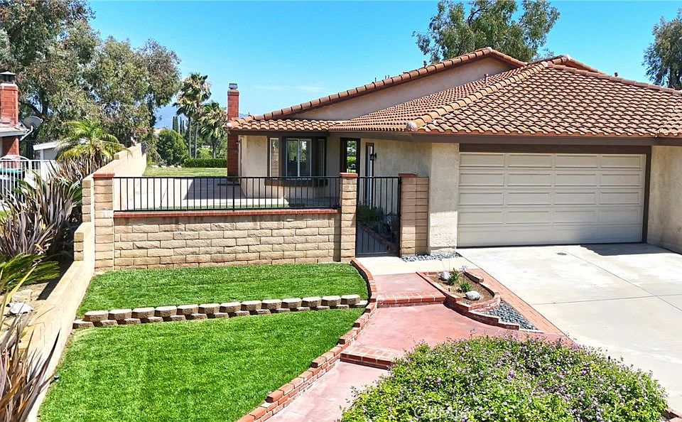Discover Serenity at 3610 Vista Glen Circle, Yorba Linda! Welcome to this turnkey and beautiful view home, nestled on a desirable single-loaded cul-de-sac in Yorba Linda. Offering 1,212 square feet of living space with 2 bedrooms and 2 bathrooms, situated on a generous 4,800 square foot lot, this residence promises a lifestyle of comfort and breathtaking views. Step through a charming privacy gate to a beautiful front door entry, where you'll be immediately captivated by the stunning mountain and city light views. The heart of the home is a fabulous kitchen, thoughtfully designed with Corian countertops, custom cabinetry and hardware, a new light fixture, and convenient bar seating, all complemented by updated appliances. The kitchen seamlessly opens to a bright and inviting dining and living area, featuring vaulted ceilings, an elegant marble-faced fireplace, and a mirrored wall that beautifully reflects natural light. Two sliders lead from this space to both the side and back yards, perfect for indoor-outdoor living. The primary bedroom offers a private retreat with a slider providing direct access to the tranquil backyard and dual closets for ample storage. The en-suite primary bath features an updated faucet, vanity lighting and a tub/shower combo. The spacious second bedroom provides direct access to the second bathroom and boasts two closets with built-in shelving, offering practical storage solutions. Bath 2 features a refreshing shower and a new faucet. Further enhancing this home are a host of upgrades and amenities, including luxurious vinyl plank flooring throughout, energy-efficient double-pane windows, a newer water heater, and new heating and air units for year-round comfort. Outside, the backyard provides a private oasis with a concrete patio and a new vinyl fence. The beautifully landscaped yard, complete with new sprinklers on timers, ensures easy maintenance. A two-car attached garage offers built-in shelving for organized storage. Enjoy the benefits of residing in a community with award-winning schools, nearby trails convenient for exercise and adventure, and the significant advantage of no Mello Roos and no HOA fees. This Yorba Linda gem truly offers an exceptional blend of comfort, convenience, and captivating views!