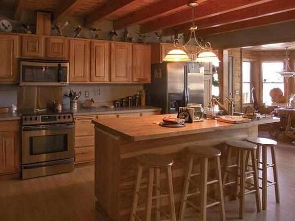 - Fireplace features: wood stove